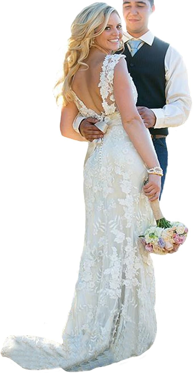 D W U Backless V Neck Lace Country Rustic Wedding Dresses Garden Bridal Gown Ivory Us 8 Amazon Ca Clothing Accessories